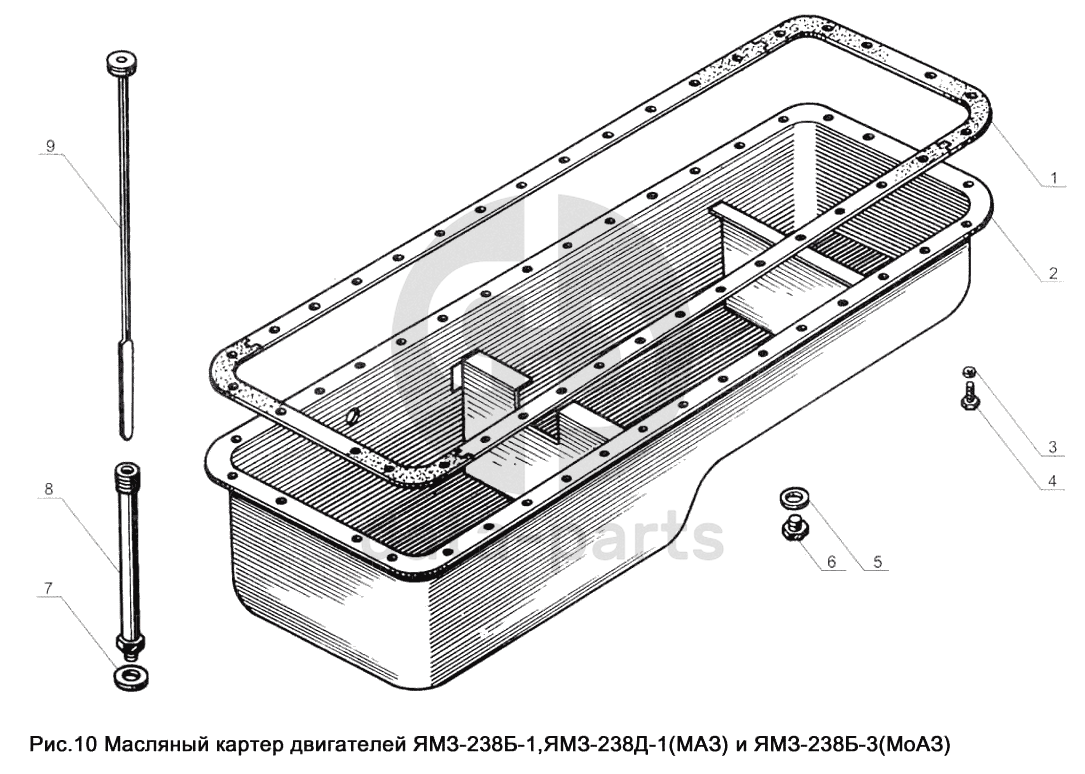 Масляный картер двигателей ЯМЗ-238Б-1, ЯМЗ-238Д-1 (МАЗ) и ЯМЗ-238Б-3 (МоАЗ) ЯМЗ-238Д и Б