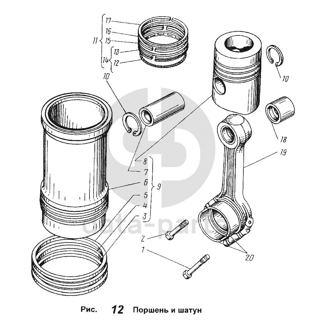 Гильза с поршнем ЯМЗ-236 238 (гильза поршень кольца упл. и ст. п/п п/кольца)