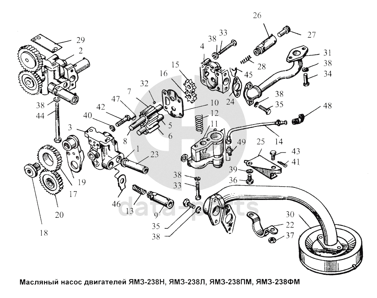 Масляный насос двигателей ЯМЗ-238Н, ЯМЗ-238Л, ЯМЗ-238ПМ, ЯМЗ-238ФМ ЯМЗ-238 Л