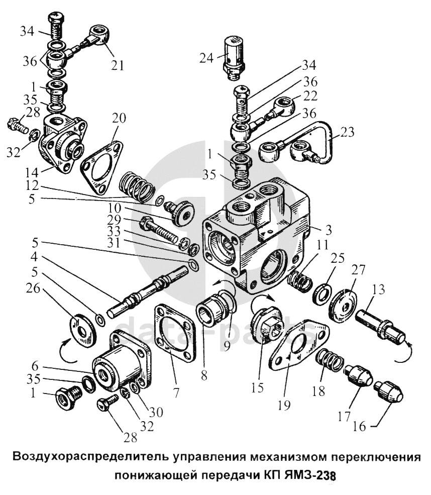 Воздухораспределитель управления механизмом переключения понижающей передачи КП ЯМЗ-238