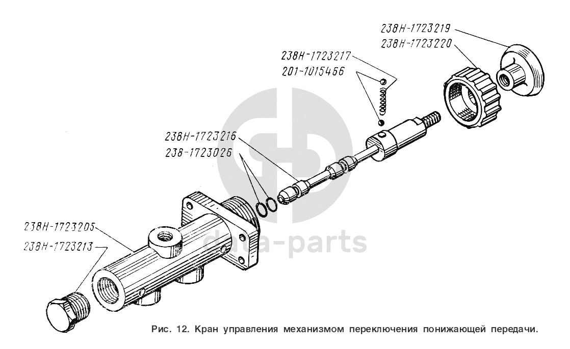 Кран управления механизмом переключения понижающей передачи ЯМЗ-238 Л