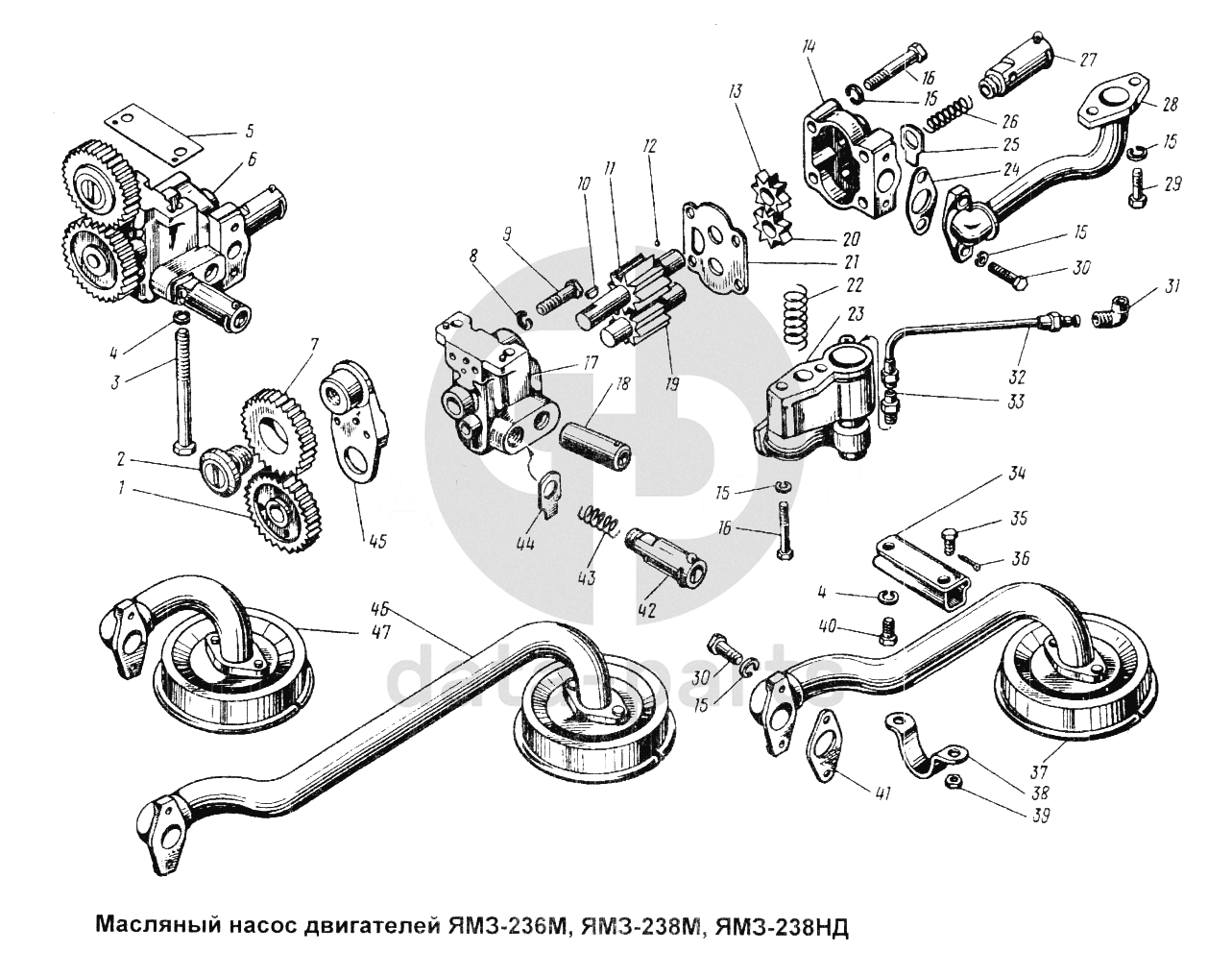 Масляный насос двигателей ЯМЗ-236М, ЯМЗ-238М, ЯМЗ-238НД