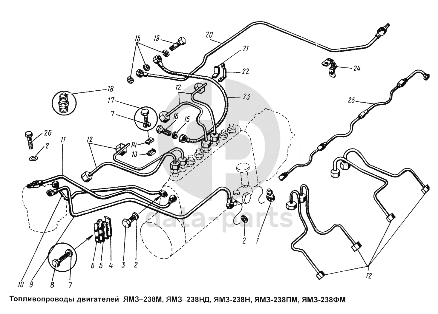 Топливопроводы двигателей ЯМЗ-238М, ЯМЗ-238НД, ЯМЗ238Н, ЯМЗ-238ПМ, ЯМЗ-238ФМ