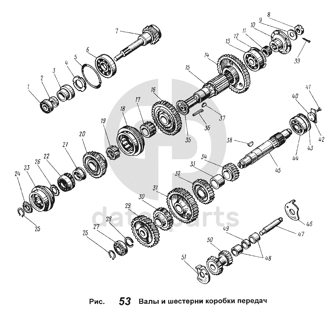 Валы и шестерни коробки передач ЯМЗ-238 М