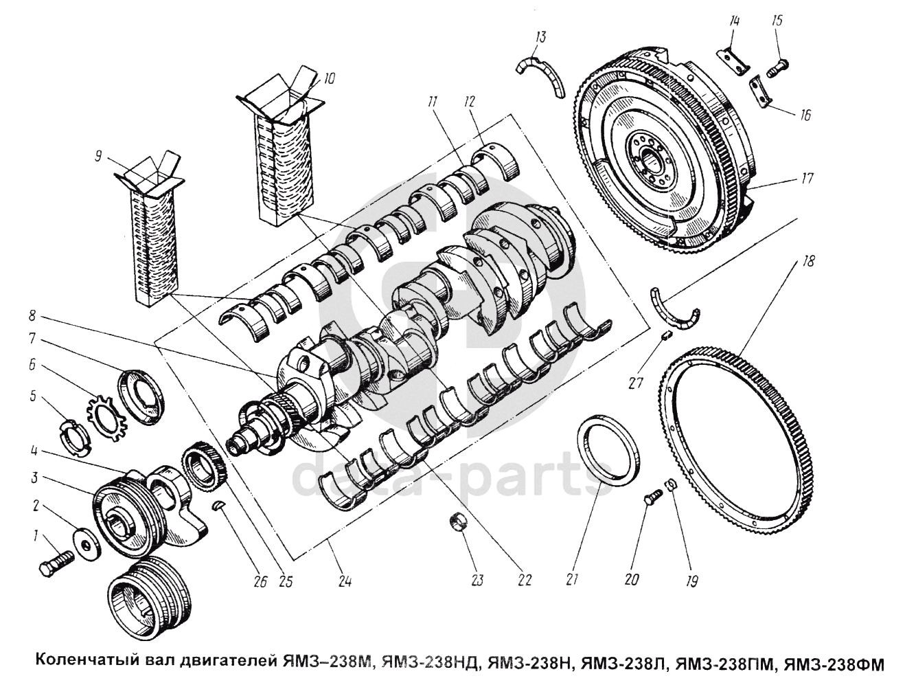 Коленчатый вал двигателя ЯМЗ-238М, ЯМЗ-238НД, ЯМЗ-238Н, ЯМЗ-238Л, ЯМЗ-238ПМ, ЯМЗ-238ФМ ЯМЗ-238 Н