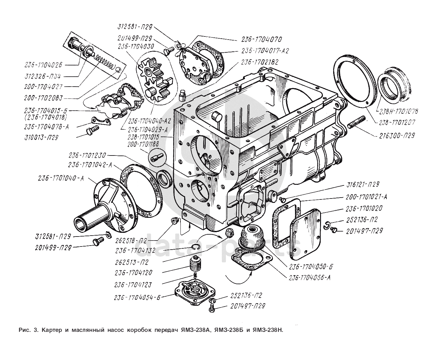 Картер и масляный насос коробок передач ЯМЗ-238А, ЯМЗ-238Б и ЯМЗ-238Н ЯМЗ-238 Н