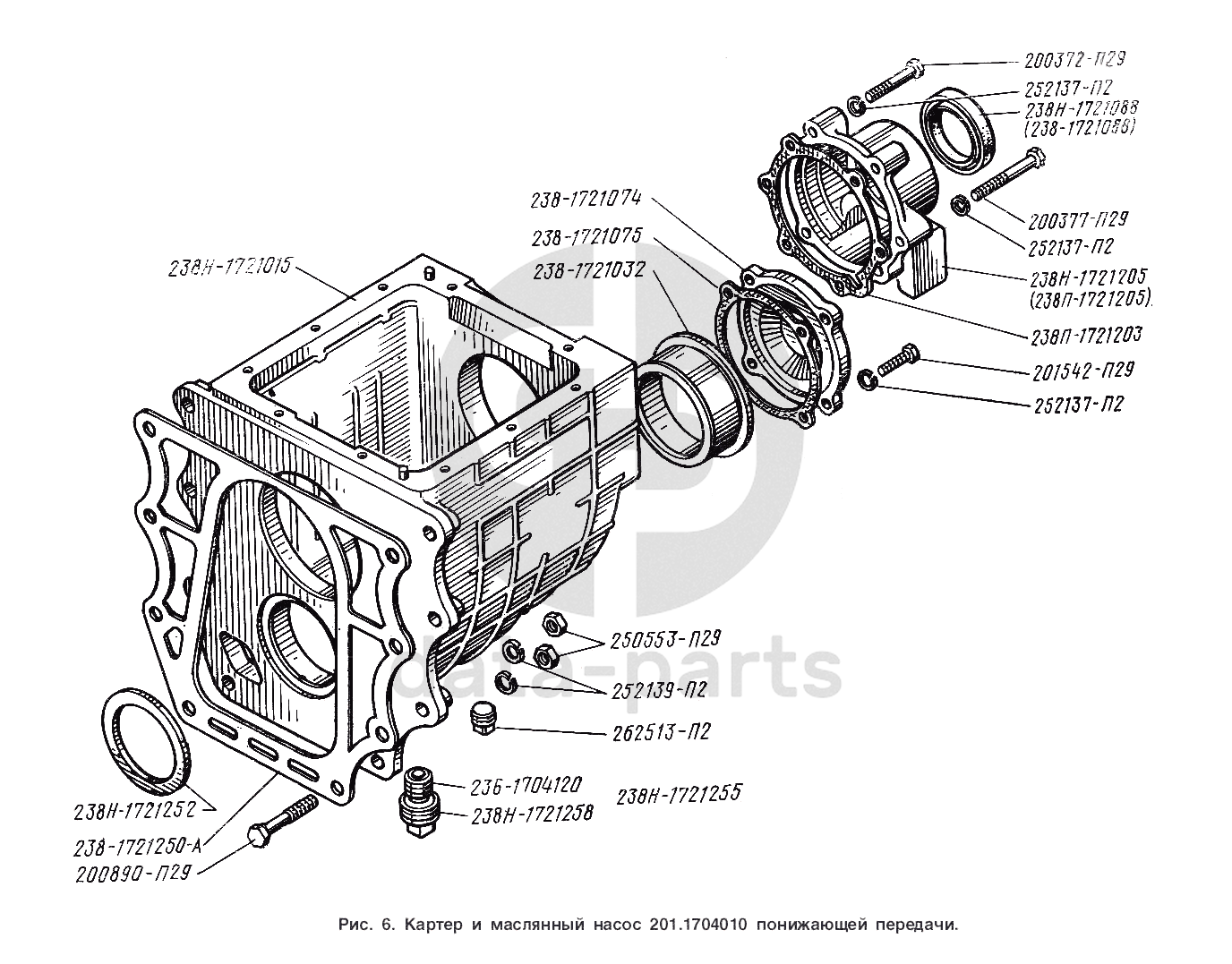 Картер и масляный насос 201.1704010 понижающей передачи ЯМЗ-238 Н