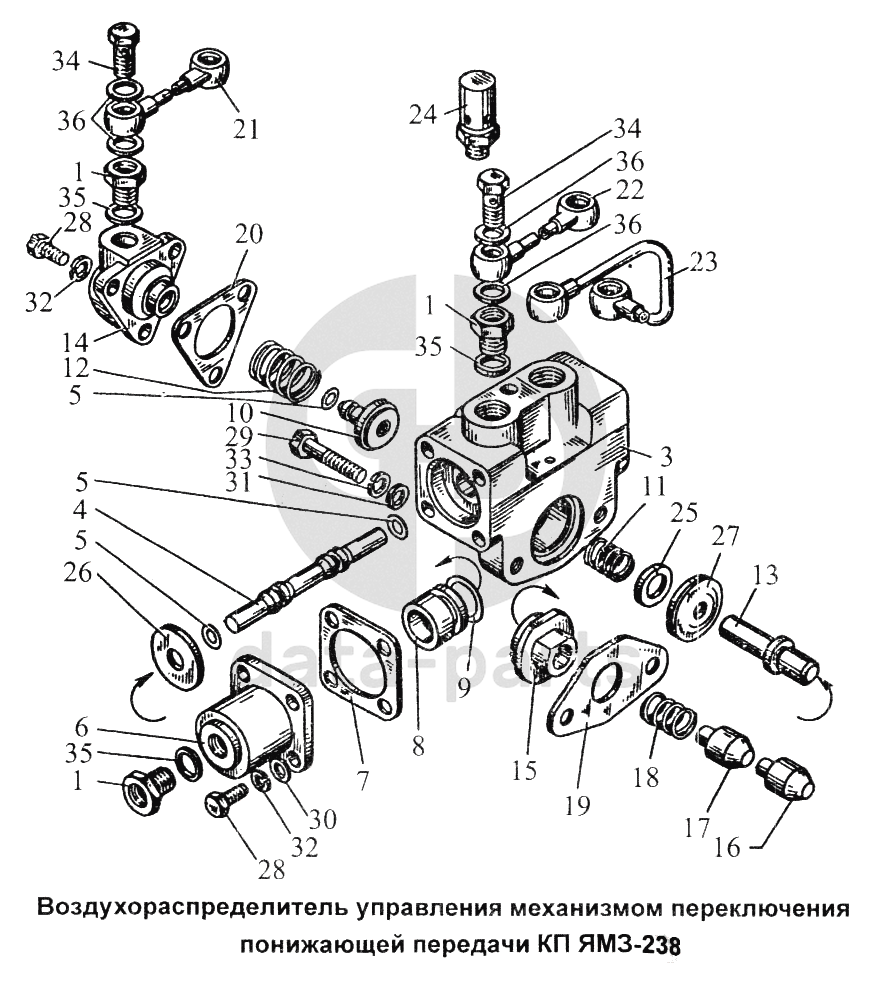 Воздухораспределитель управления механизмом переключения понижающей передачи КП ЯМЗ-238