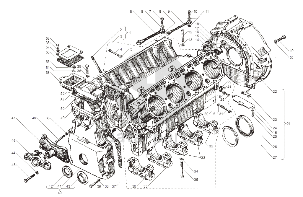 Блок цилиндров с деталями привода ТНВД. Комплект для запасных частей