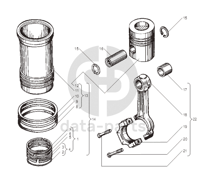 Комплект гильзы, поршня, поршневых и уплотнительных колец