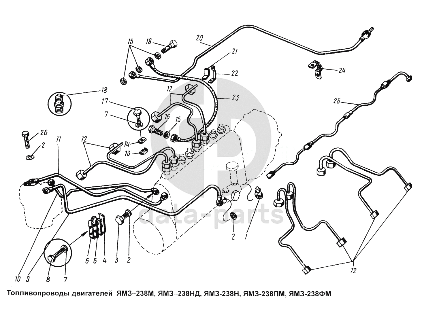 Топливопроводы двигателей ЯМЗ-238М, ЯМЗ-238НД, ЯМЗ-238ПМ и ЯМЗ-238ФМ ЯМЗ-238 НД