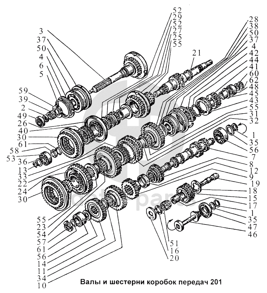 Валы и шестерни коробок передач 201 ЯМЗ-238 НД