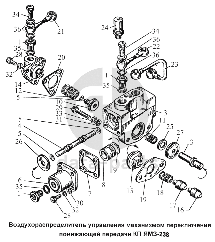 Воздухораспределитель управления механизмом переключения понижающей передачи КП ЯМЗ-238