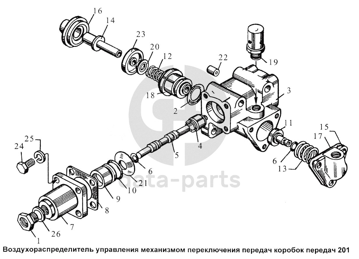 Воздухораспределитель управления механизмом переключения передач коробок передач 201