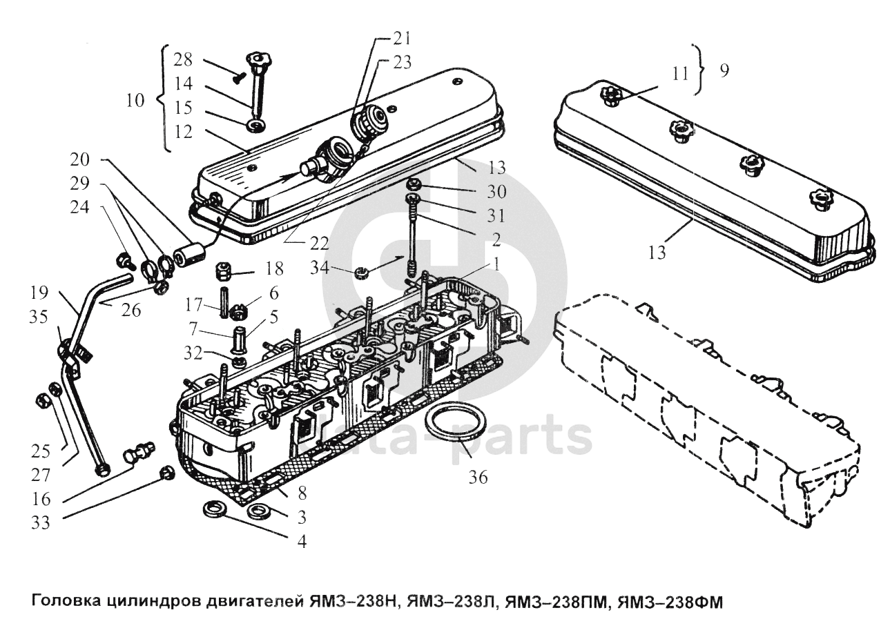Головка цилиндров двигателей ЯМЗ-238Н, ЯМЗ-238Л, ЯМЗ-238ПМ, ЯМЗ-238ФМ ЯМЗ-238 ПМ и 238 ФМ