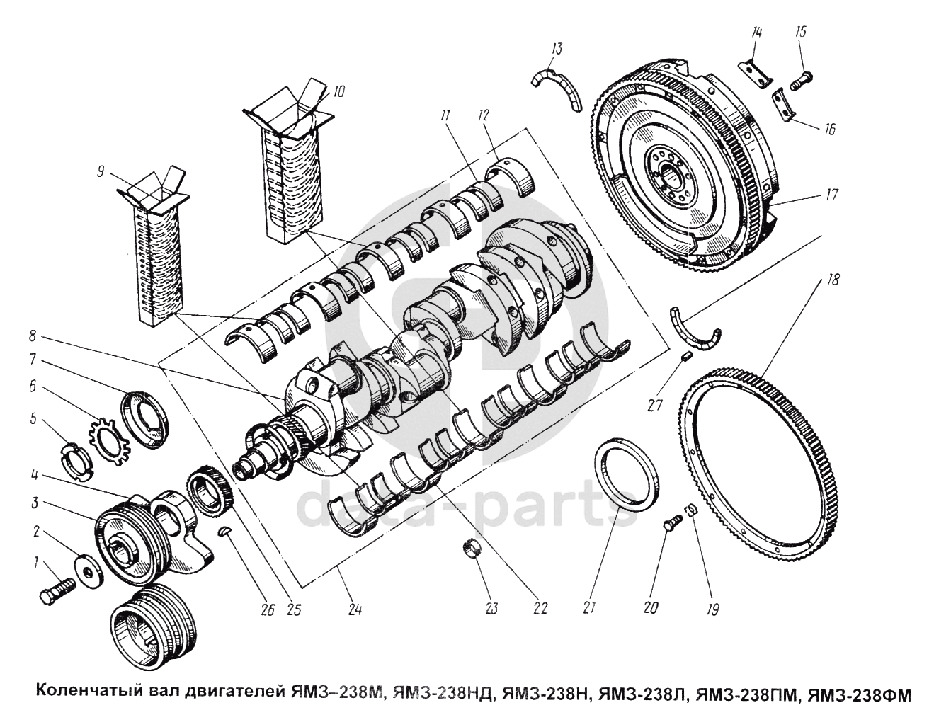 Коленчатый вал двигателя ЯМЗ-238М, ЯМЗ-238НД, ЯМЗ-238Н, ЯМЗ-238Л, ЯМЗ-238ПМ, ЯМЗ-238ФМ ЯМЗ-238 ПМ и 238 ФМ