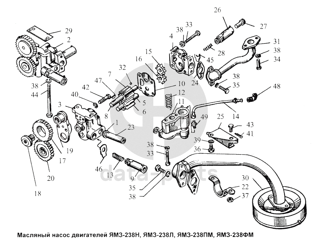 Масляный насос двигателей ЯМЗ-238Н, ЯМЗ-238Л, ЯМЗ-238ПМ, ЯМЗ-238ФМ ЯМЗ-238 ПМ и 238 ФМ