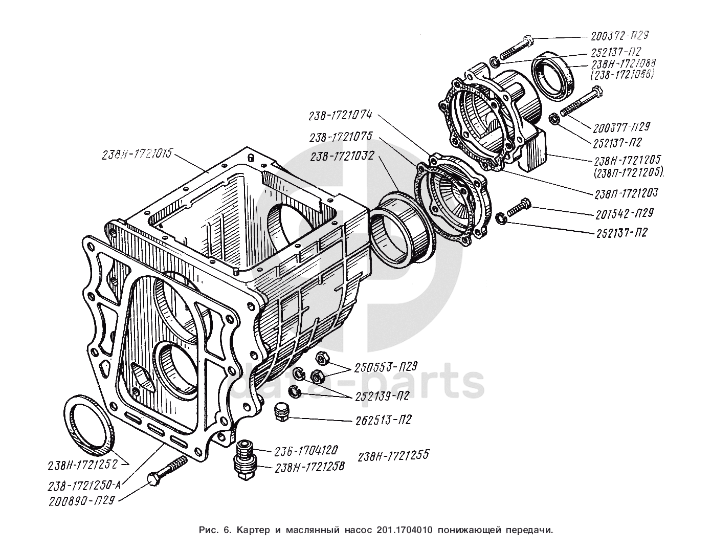 Картер и масляный насос 201.1704010 понижающей передачи ЯМЗ-238 ПМ и 238 ФМ
