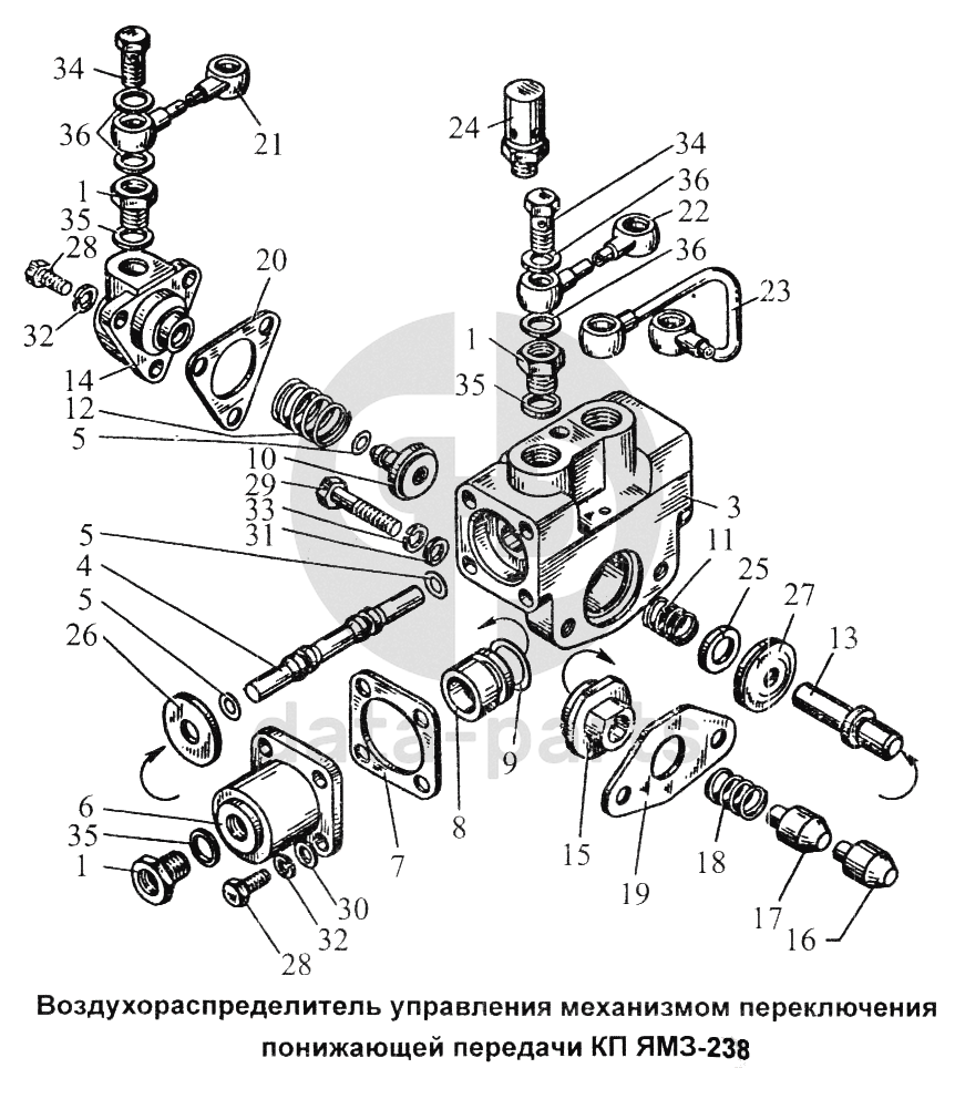 Воздухораспределитель управления механизмом переключения понижающей передачи КП ЯМЗ-238