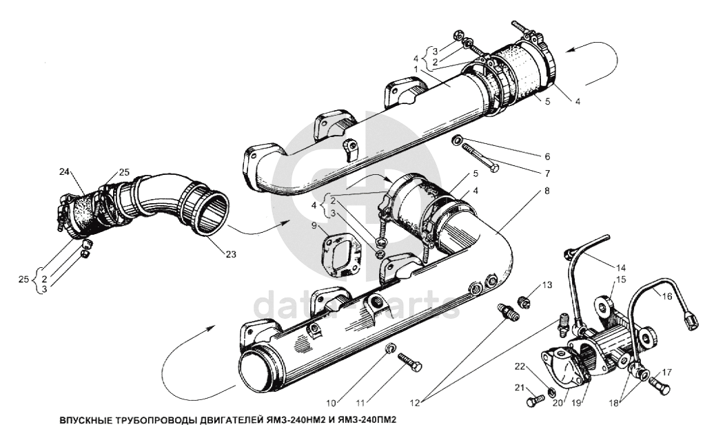 Впускные трубопроводы двигателей ЯМЗ-240НМ2 и ЯМЗ-240ПМ2 ЯМЗ-240