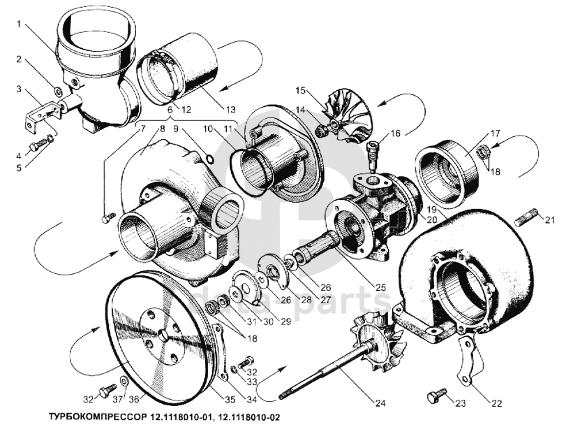 Турбокомпрессор 12.1118010-01 (02) ЯМЗ-240