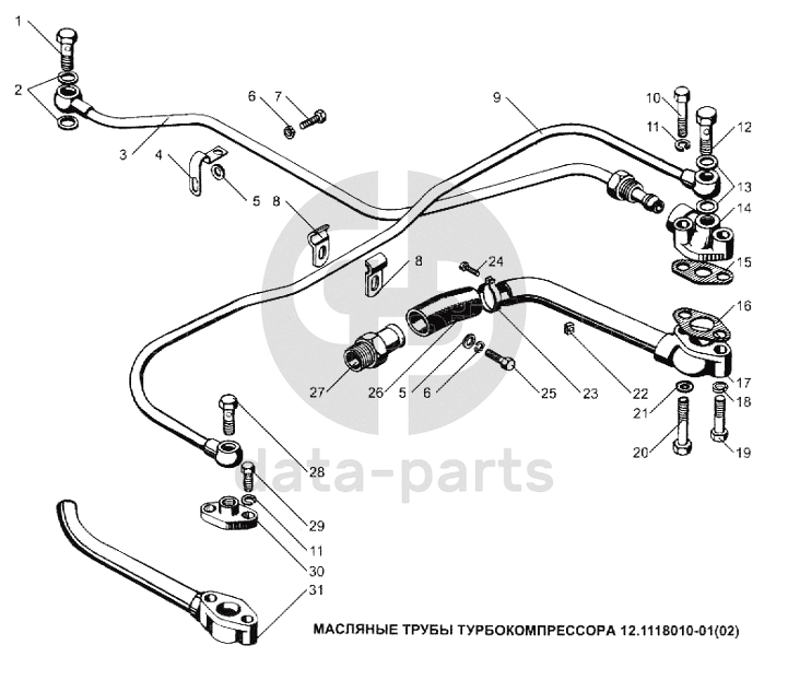 Масляные трубы турбокомпрессора 12.1118010-01 (02)