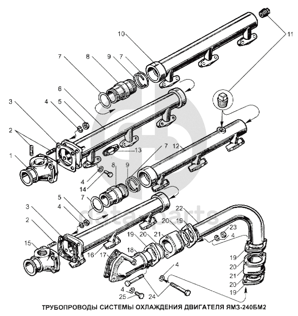 Трубопроводы системы охлаждения двигателя ЯМЗ-240БМ2 ЯМЗ-240