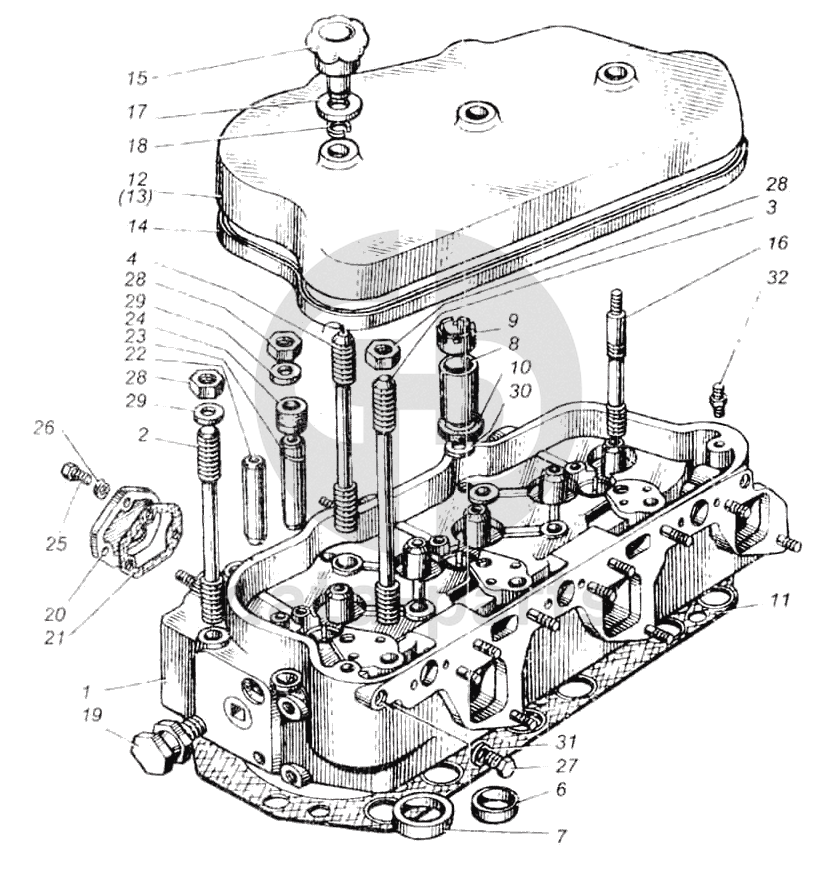 Головка цилиндров со шпильками и стойкой оси коромысла (комплект)