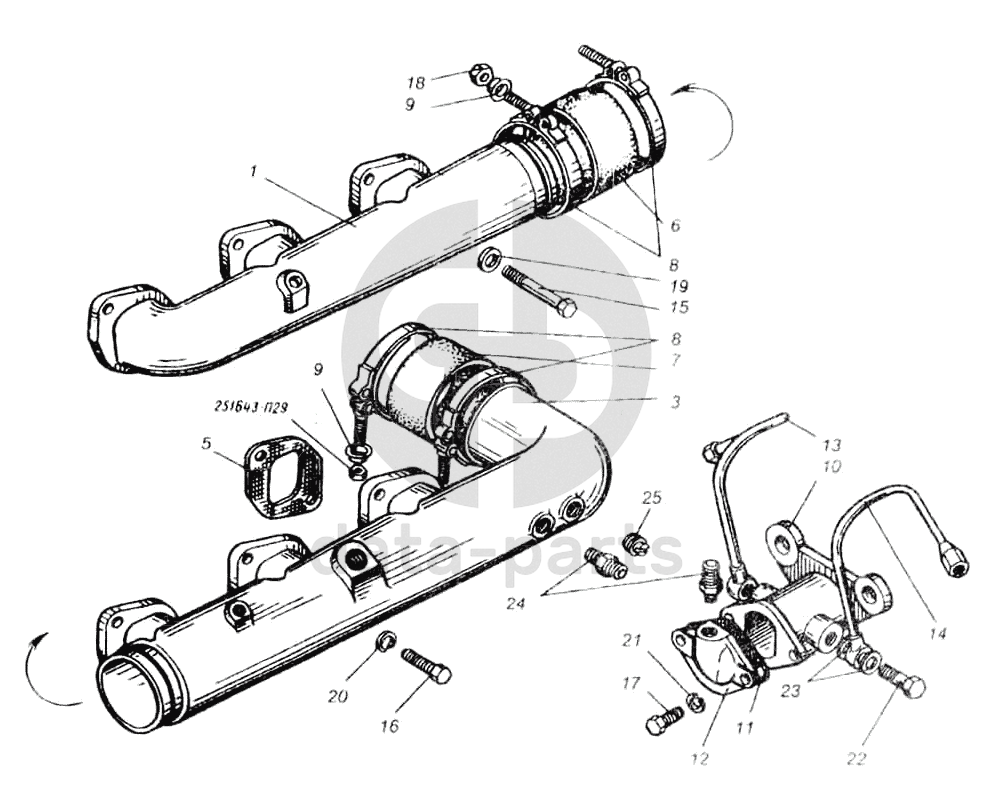 Трубопроводы впускные двигателя ЯМЗ-240Н, ЯМЗ-240П