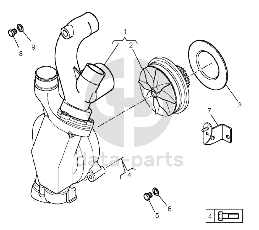 Корпус подшипника с осью, крыльчаткой и шестерней водяного насоса в сборе