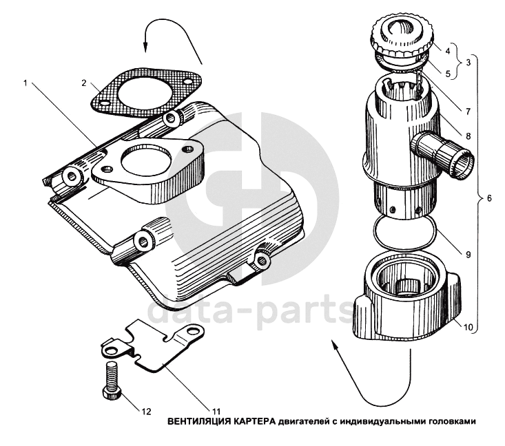 Вентиляция картера (для двигателей с индивидуальными головками цилиндров) ЯМЗ-6561.10 (Евро 3)