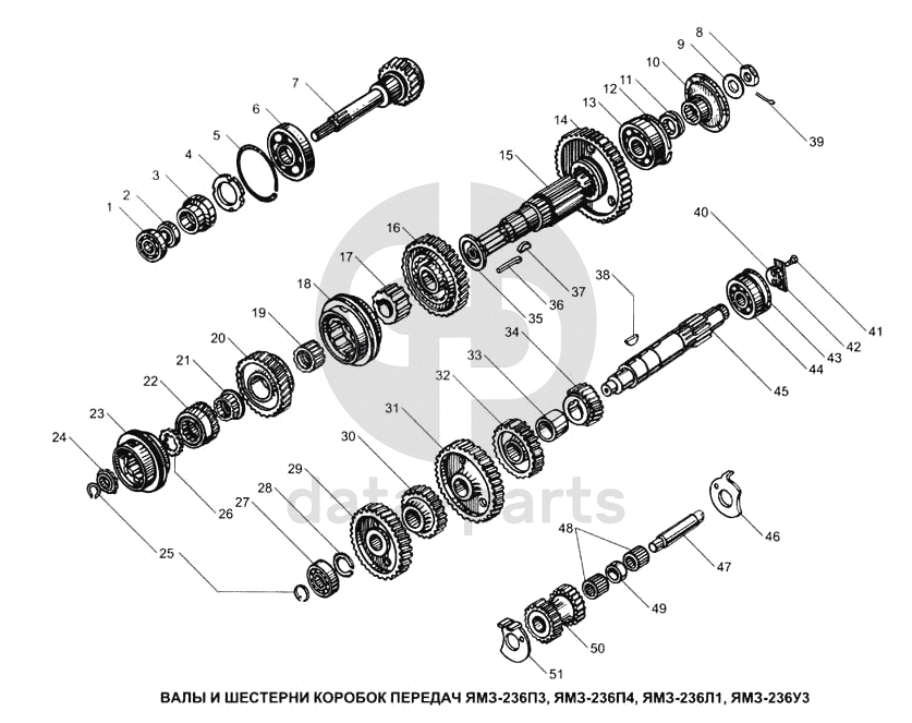 Валы и шестерни коробки передач ЯМЗ-2361-06 ЯМЗ-6561.10 (Евро 3)