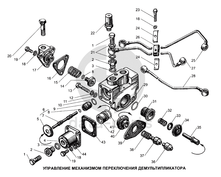 Управление механизмом переключения демультипликатора коробки передач ЯМЗ-2381-06