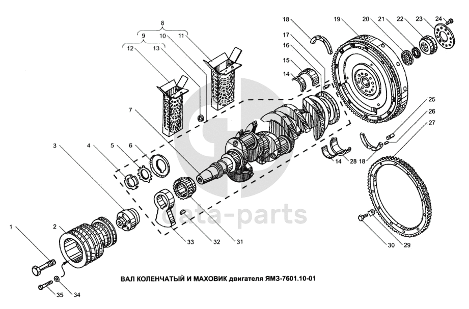 Вал коленчатый и маховик