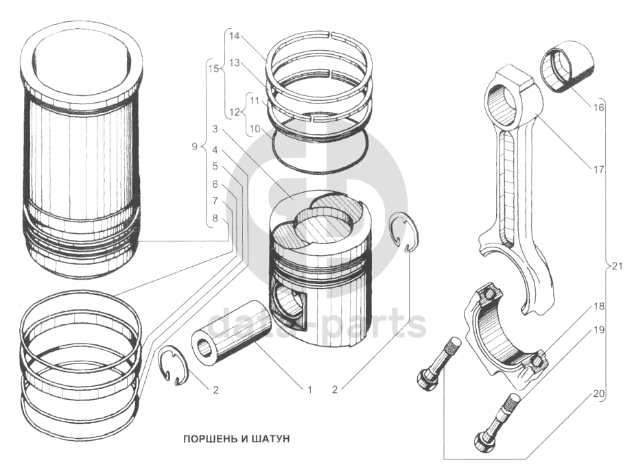 Комплект гильзы, поршня, поршневых и уплотнительных колец