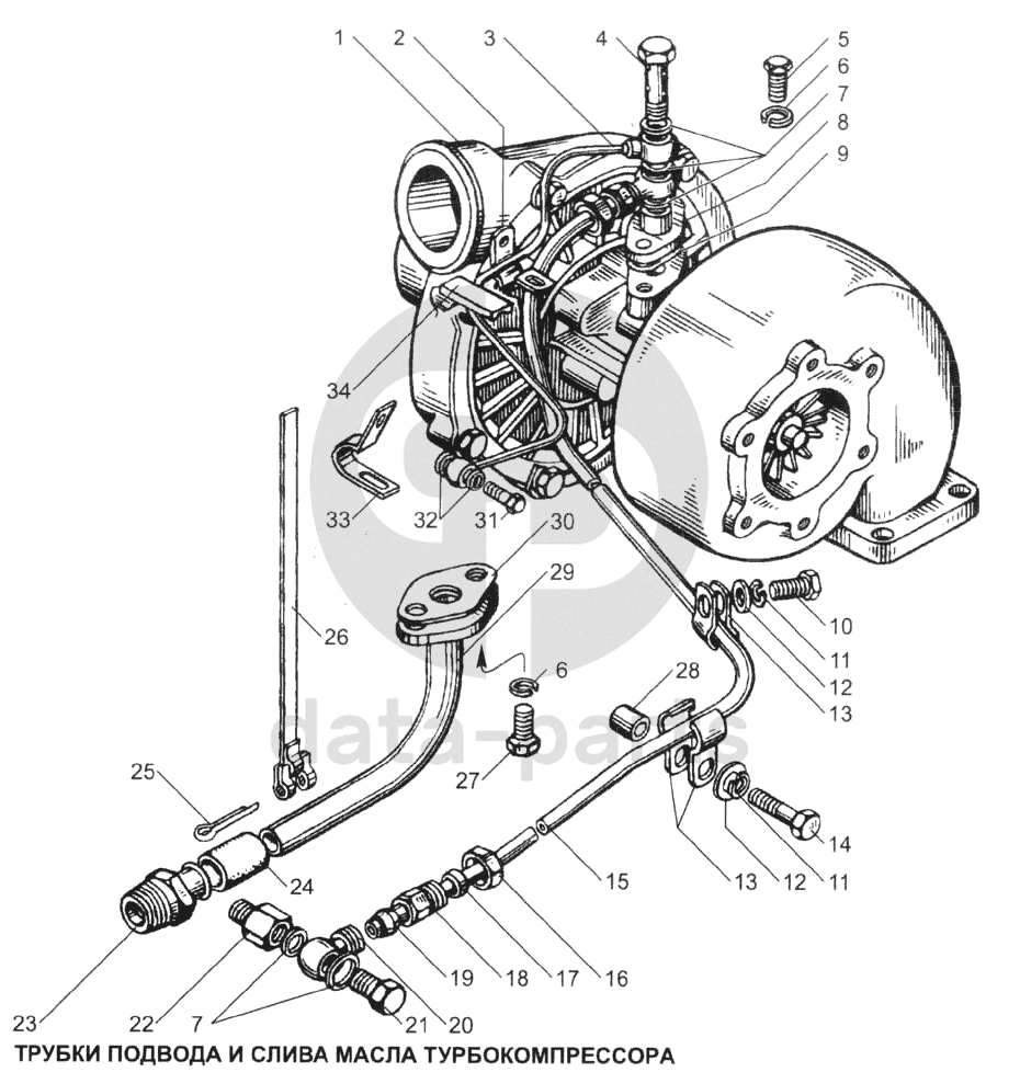 Трубки подвода и слива масла турбокомпрессора ЯМЗ-7511