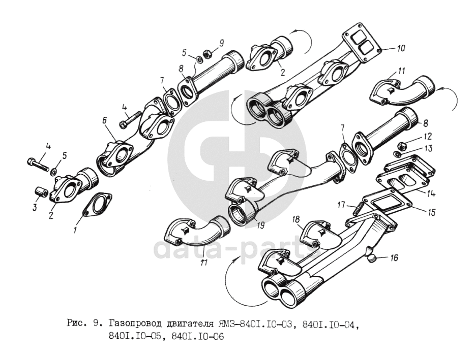 Газопровод двигателя ЯМЗ-8401.10-03, 8401.10-04, 8401.10-05, 8401.10-06