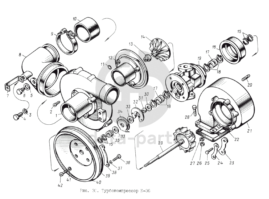 Турбокомпрессор К-36 ЯМЗ-8401.10