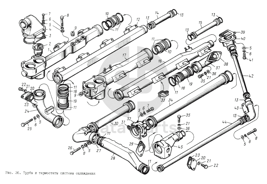 Трубы и термостаты системы охлаждения ЯМЗ-8401.10