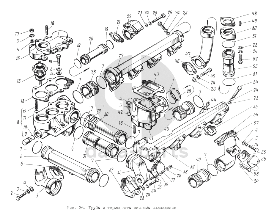 Трубы и термостаты системы охлаждения ЯМЗ-8421.10