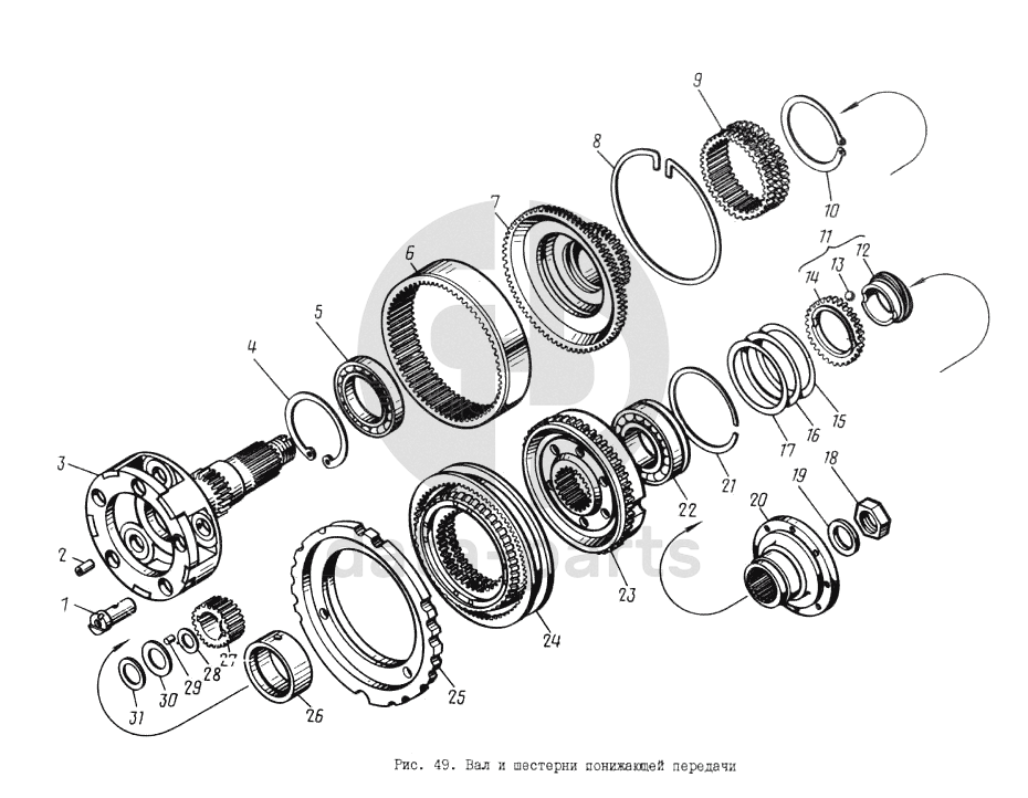 Вал и шестерни понижающей передачи ЯМЗ-8421.10