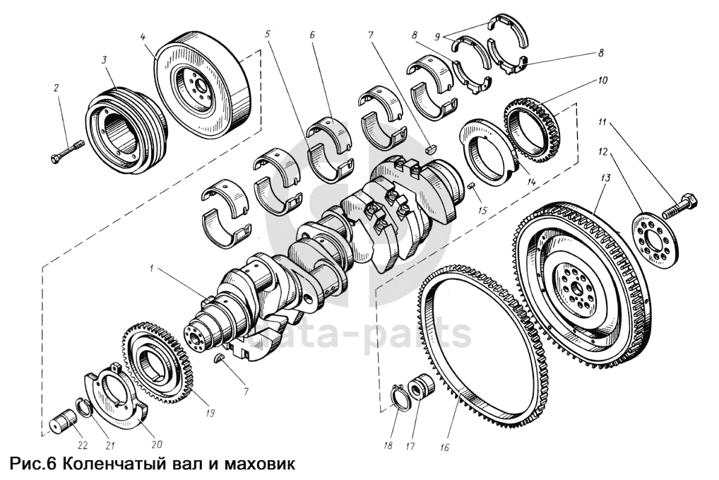 Коленчатый вал и маховик ЯМЗ-8423.10