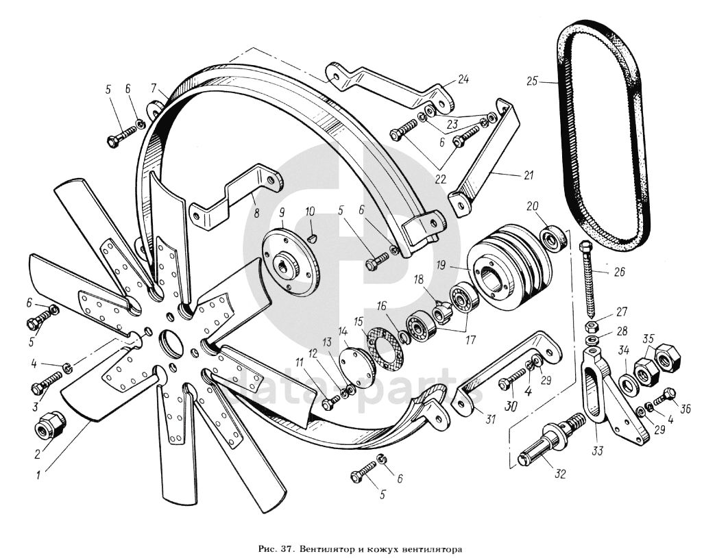 Вентилятор и кожух вентилятора ЯМЗ-8423.10