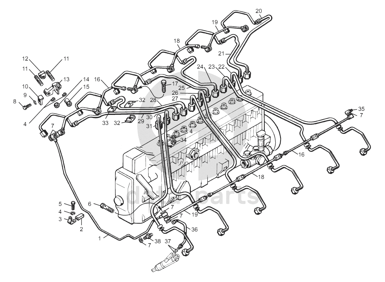 ТРУБКА ТОПЛИВНАЯ ДВЕНАДЦАТОЙ СЕКЦИИ НАСОСА ВЫСОКОГО ДАВЛЕНИЯ